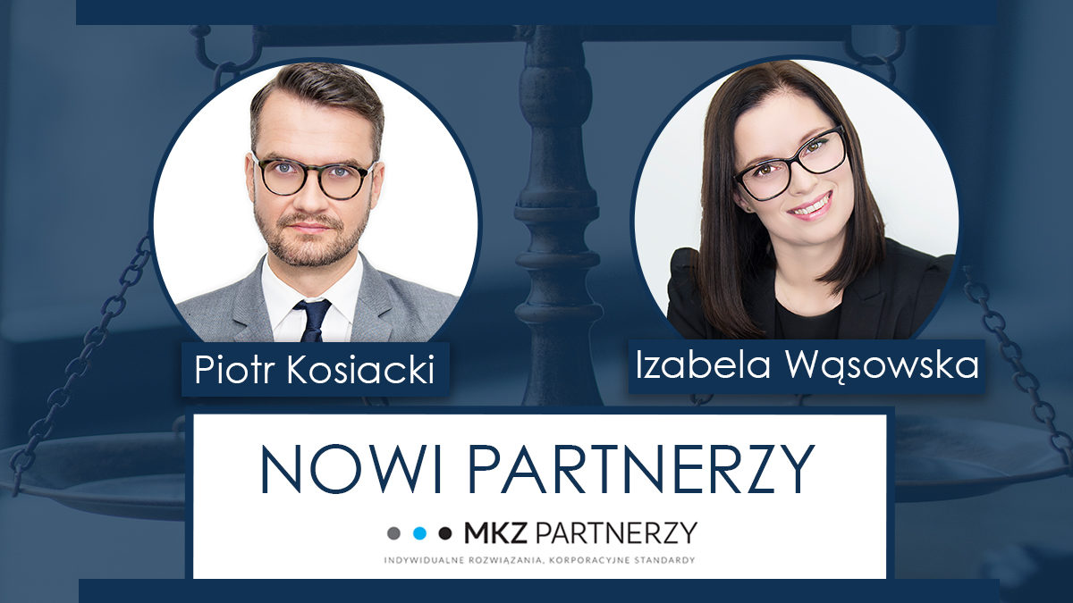 Radcy prawni Izabela Wąsowska i Piotr Kosiacki – dołączyli do grona partnerów Kancelarii MKZ Partnerzy. Nowi partnerzy reprezentują najsilniejsze praktyki m.in. prawo budowlane i zagospodarowanie przestrzenne, reklamę, logistykę i spedycję oraz M&A. W Kancelarii na stanowisku Partnera pracować będzie pięć osób, w tym dwie kobiety.